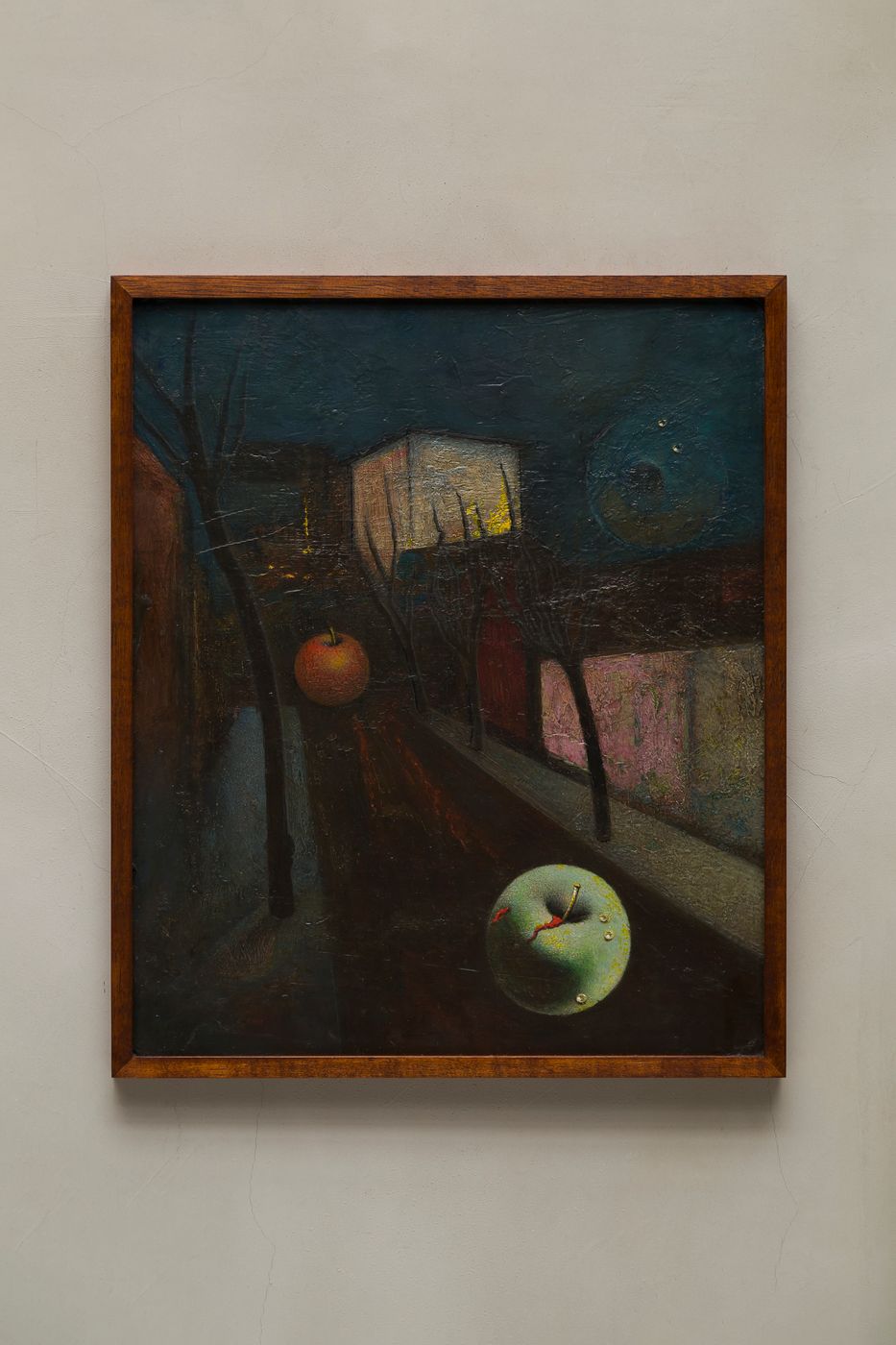 Asesinato y Beatificación la noche de San Juan. “Serie de Jeane Pomme.”, 1968. Óleo sobre hardboard. 42 x 36 cm