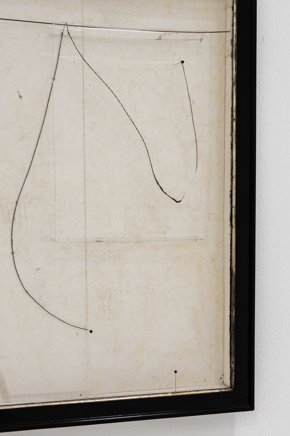 Jordi Alcaraz, Sense títol, 2025Drypoint on methacrylate, string and needles9.61 × 7.52 × 0.62 inches