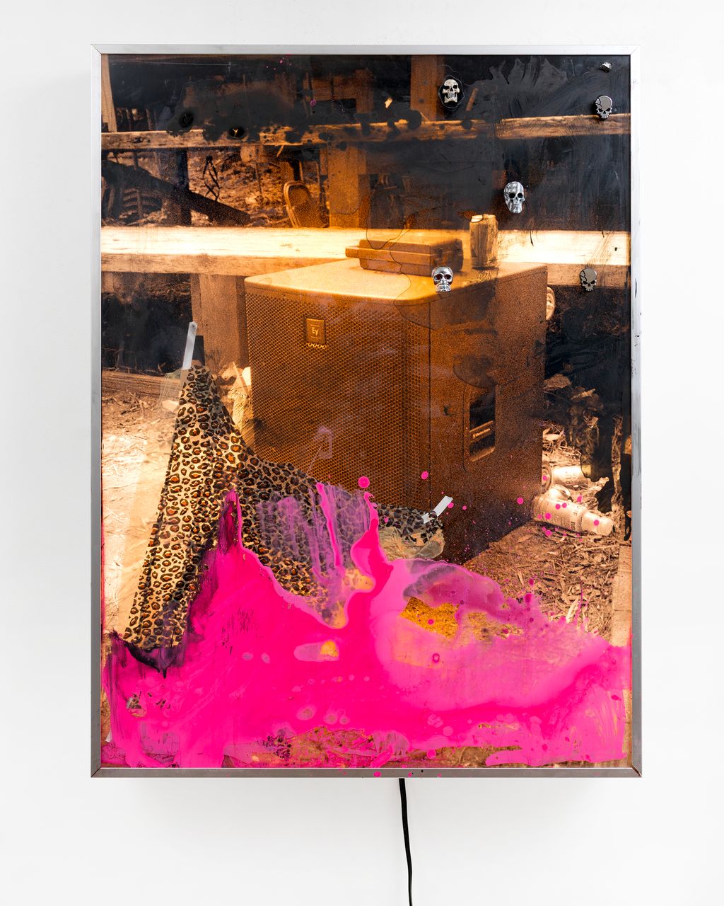 Lambda print, window paint, skull car details in stainless steel light box with fluorescent bulbs