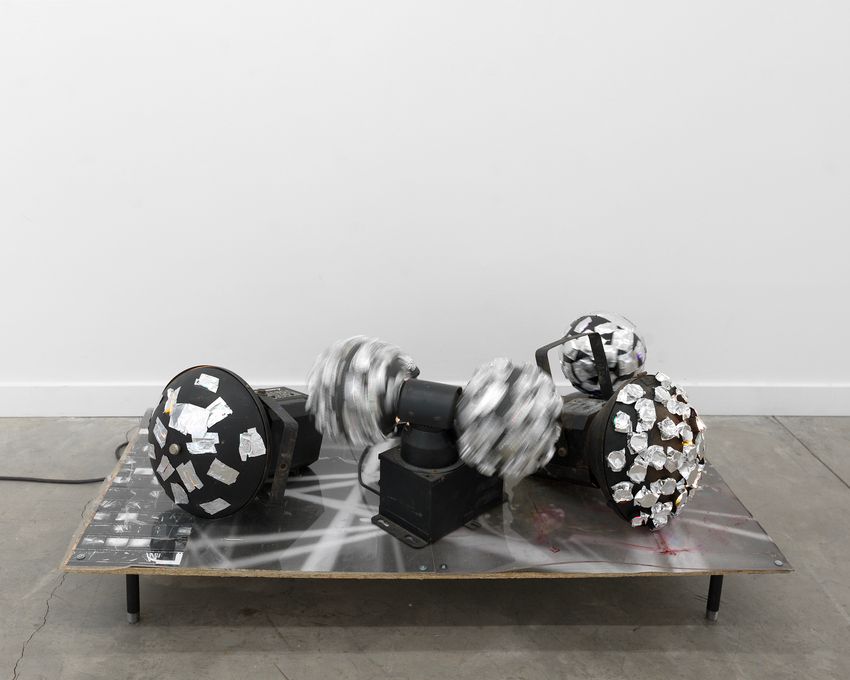 Markovic's 'Party 4 U' analyzes the formalism of dancing in club culture, viewing machines meant to disorient while creating atmosphere. Party 4 U removes the context of the environment and puts the object of the party on a pedestal while letting only the kinetic noise of the swirling disco balls exist as the reminisce of a club culture.