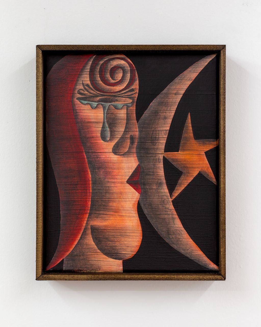 Acrylic & graphite on canvas with stained pine frame