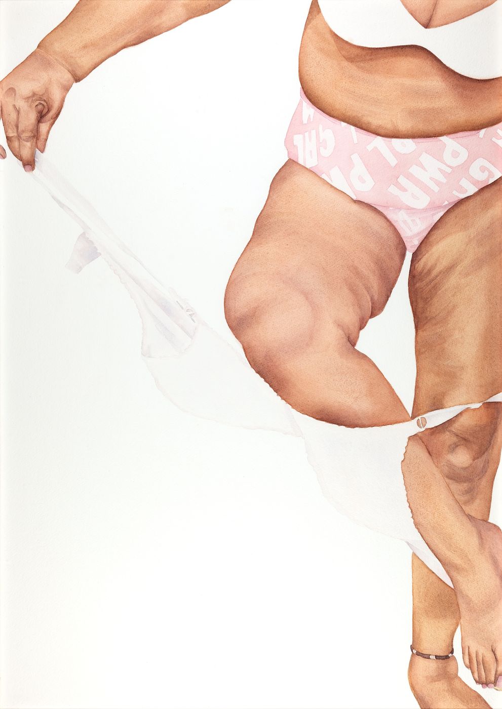 Natasha Sachdeva’s art practice is rooted in an ongoing exploration of the female body and the layered realities of womanhood. Her work questions long-standing notions that dictate how women should look, act, and exist within society. Drawing from her personal experiences, she examines beauty as both a social construct and a deeply individual struggle.