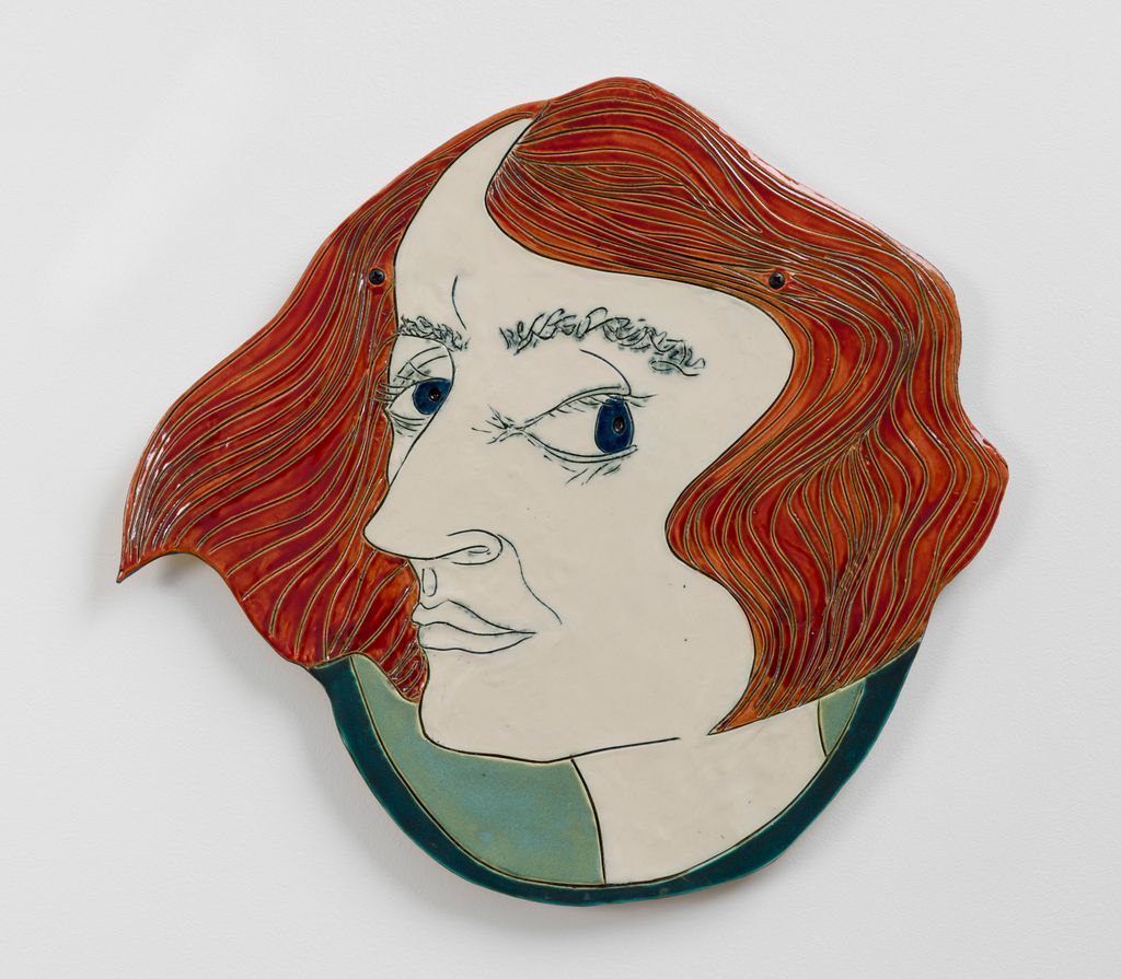 Gabriela Vainsencher, The Watcher, 2025Porcelain with glaze and underglaze mounted on baltic birch panel15 × 16 × 1 inches