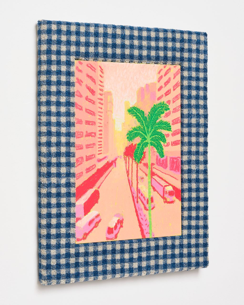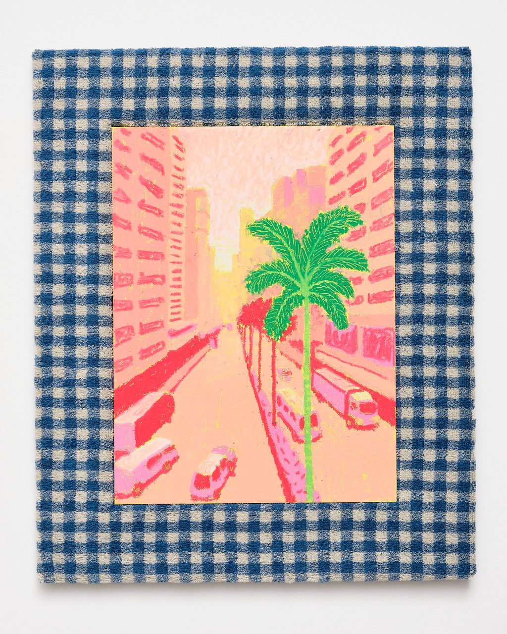 Oil pastel on canvas panel with fabric frame