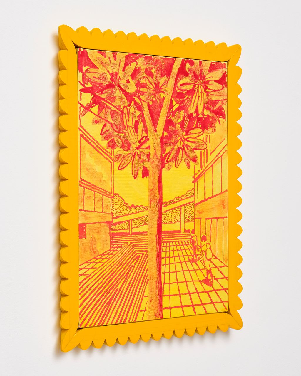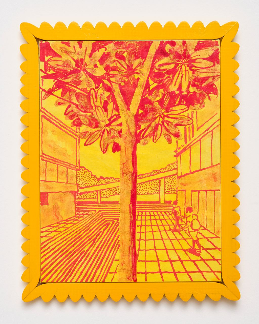 Masamitsu Shigeta, A Tree And City, 2025Enamel and acrylic on canvas panel with wood frame18 × 14 × 1 inches
