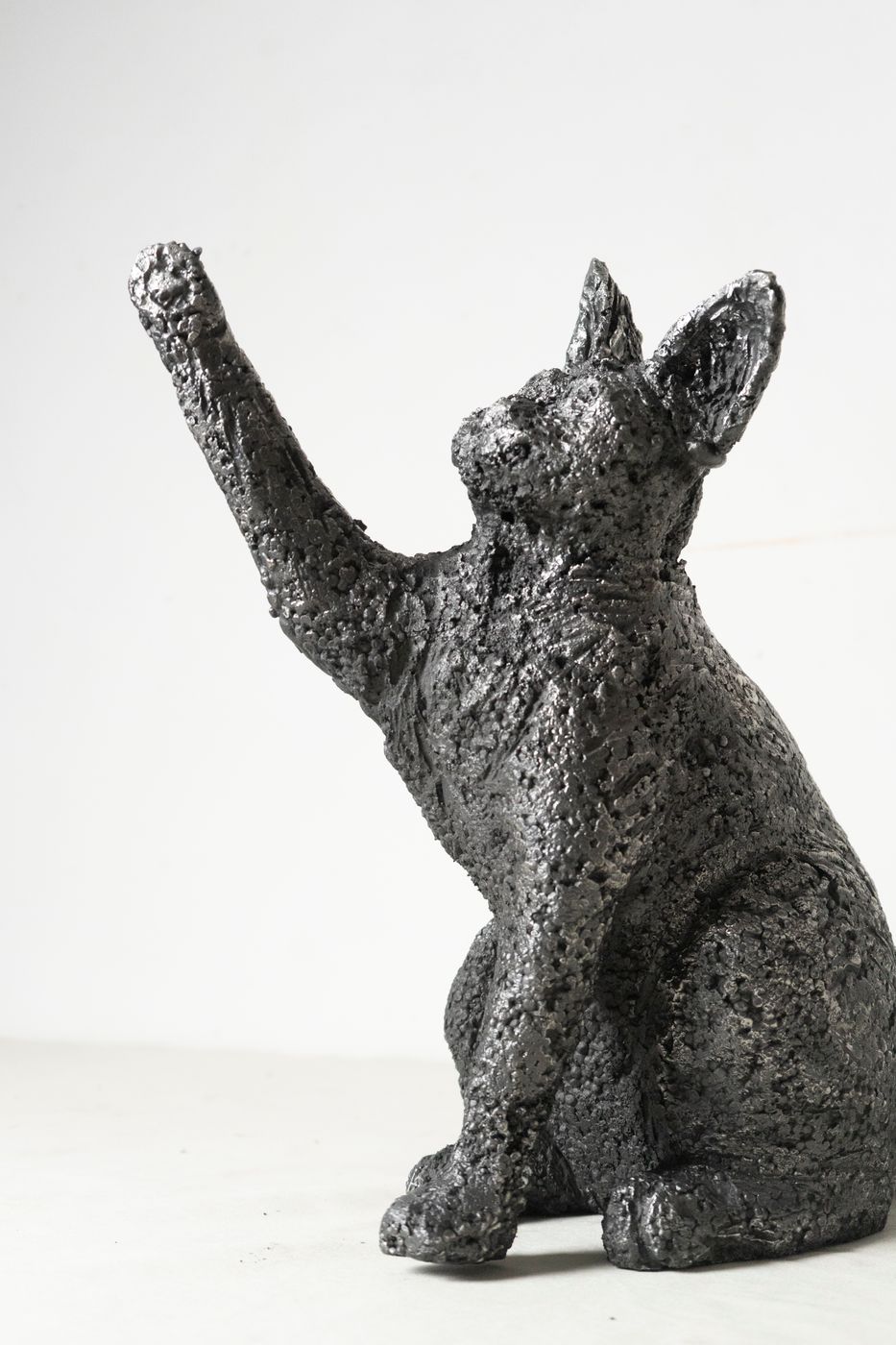 In this series of sculptures, the artist turns to the figure of the cat as a symbolic container capable of holding fears and anxieties deeply rooted in human experience. The cat—situated between tenderness and threat, between domestic intimacy and predatory instinct—functions here as an ambiguous and powerful metaphor. Its dual nature makes it an apt vehicle for addressing emotions that are difficult to name or represent directly.