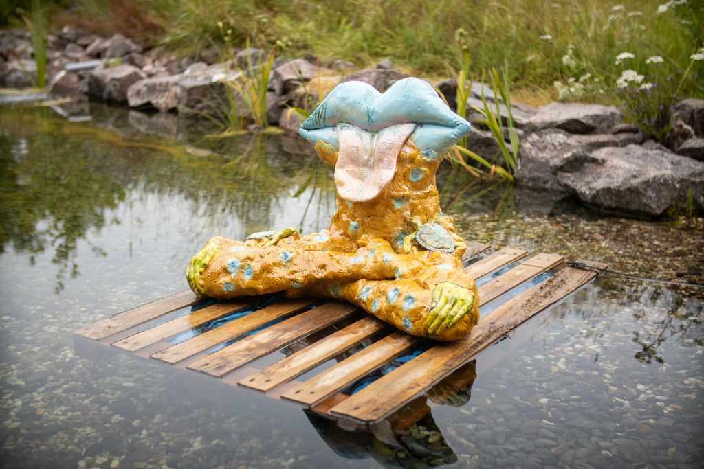 the goddess of destruction has no hands; her body is covered with hundreds of bear motifs, and she sits peacefully in a lotus pose.