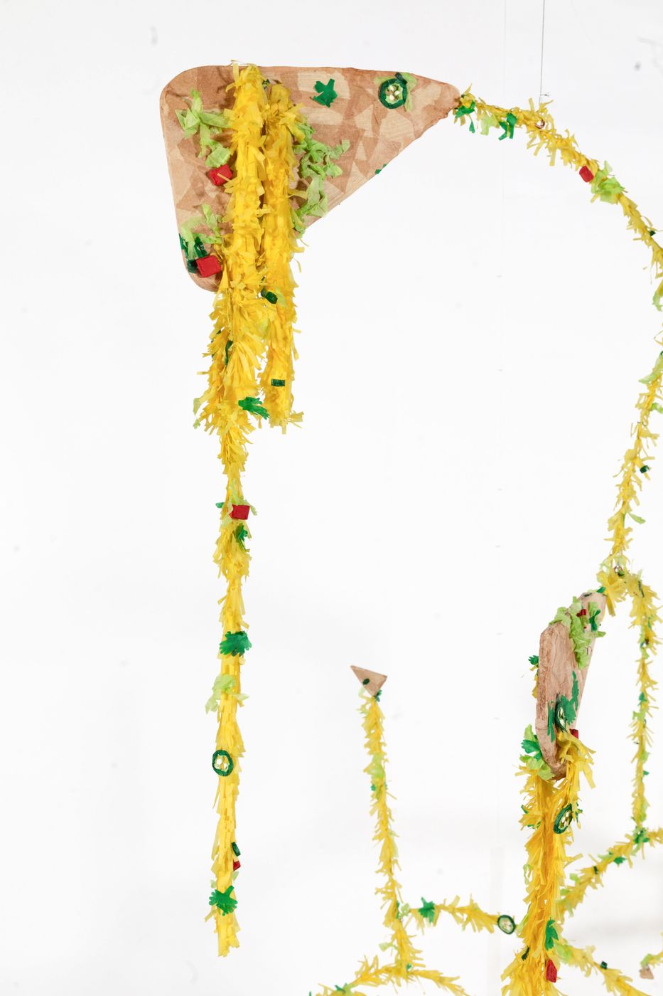 A one-to-one scale interpretation of Alexander Calder’s mobile Untitled, c1942 from the Collection of the Amon Carter Museum of American Art, Fort Worth, Texas. Commissioned by the museum as part of the artist's monumental exhibition 'Justin Favela: Puente Nuevo,' to mark the grand reopening of the Amon Carter Museum in 2019.