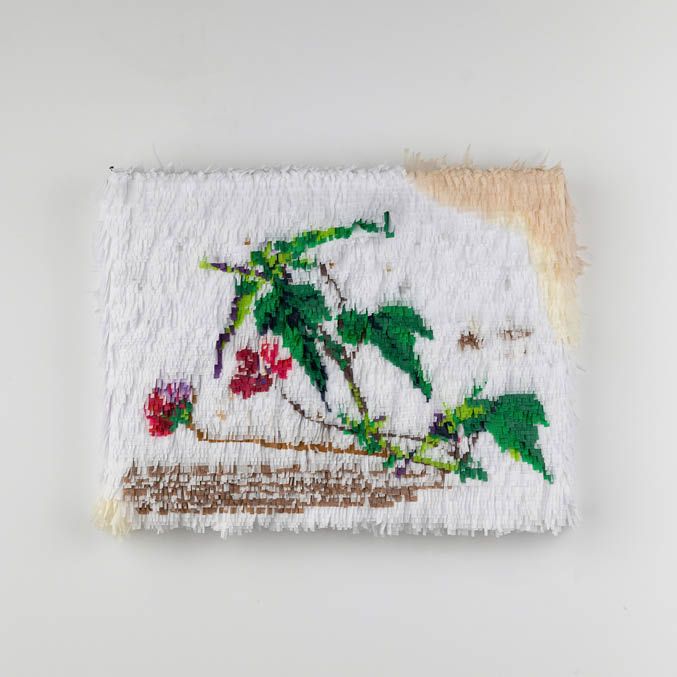 Justin Favela, Malvacéa, After José María Velasco, 2023Tissue paper and glue on board12.5 × 17.5 inches