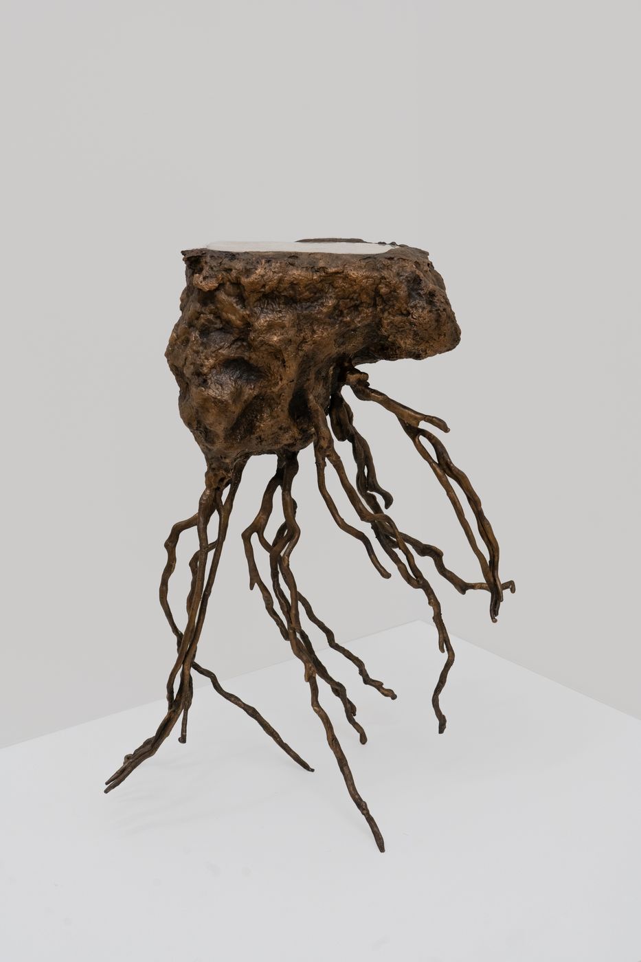 The Chthonic Entities sculpture series are grown from reishi mushrooms and cast in bronze. The artist describes them as existing in a dance between ephemerality and permanence, an interplay between the biological and inanimate. The resulting structures become symbols of immortality, urging viewers to ponder questions of change that manifest on both a biological and political level.