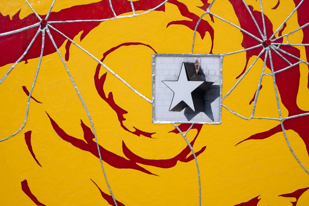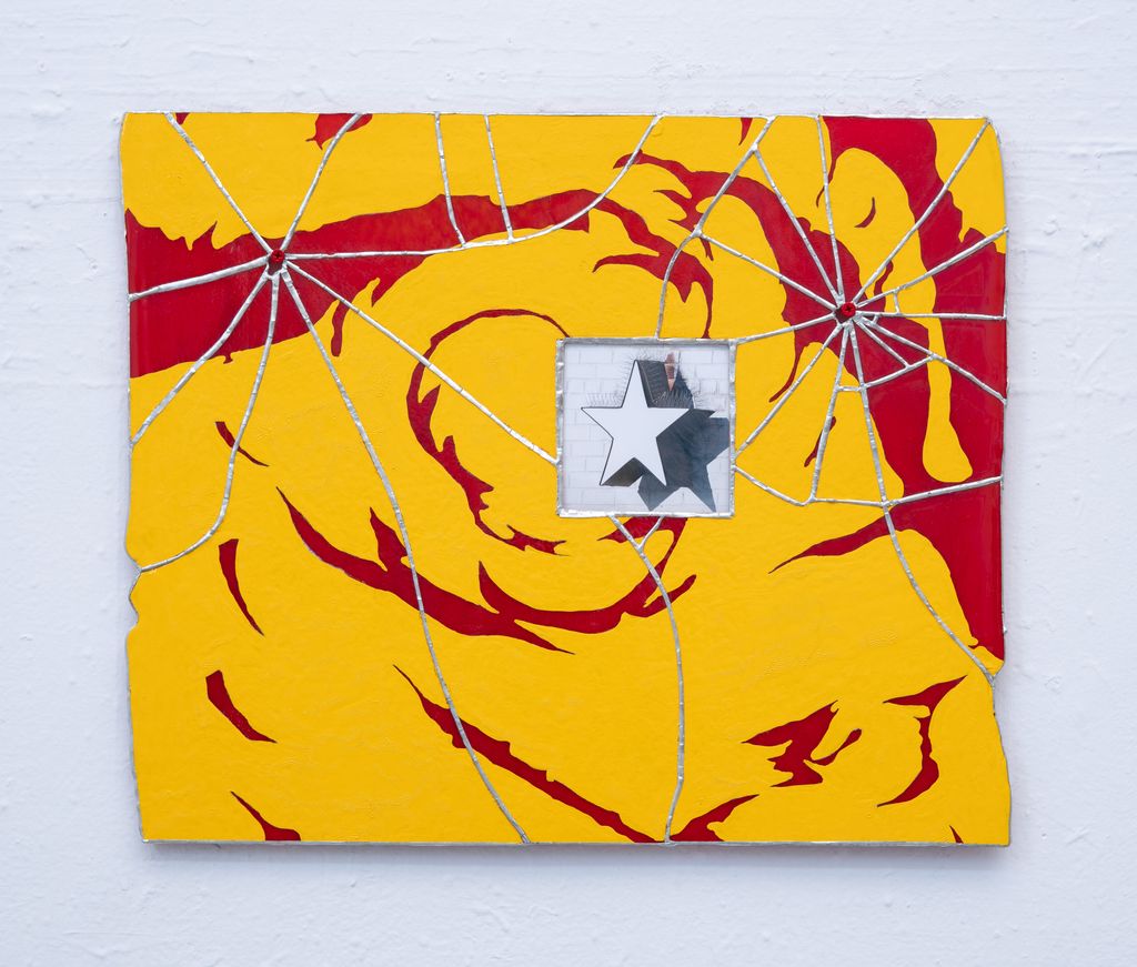 Stained glass, silver solder, enamel paint and powder coated screws
