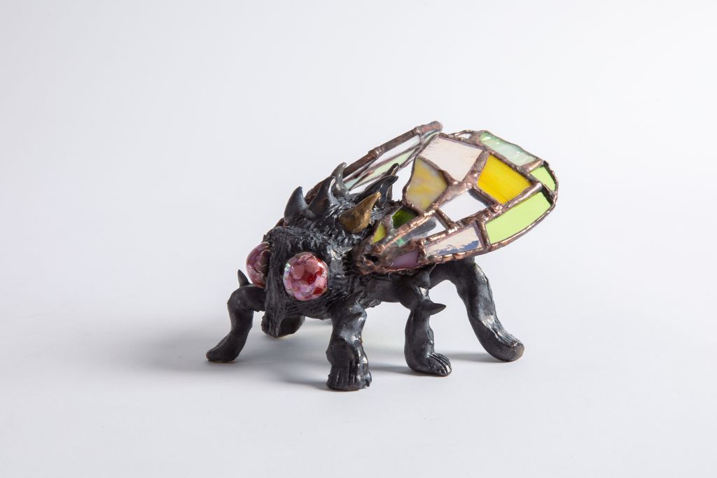 stoneware, gold, glass, solder, adhesive
