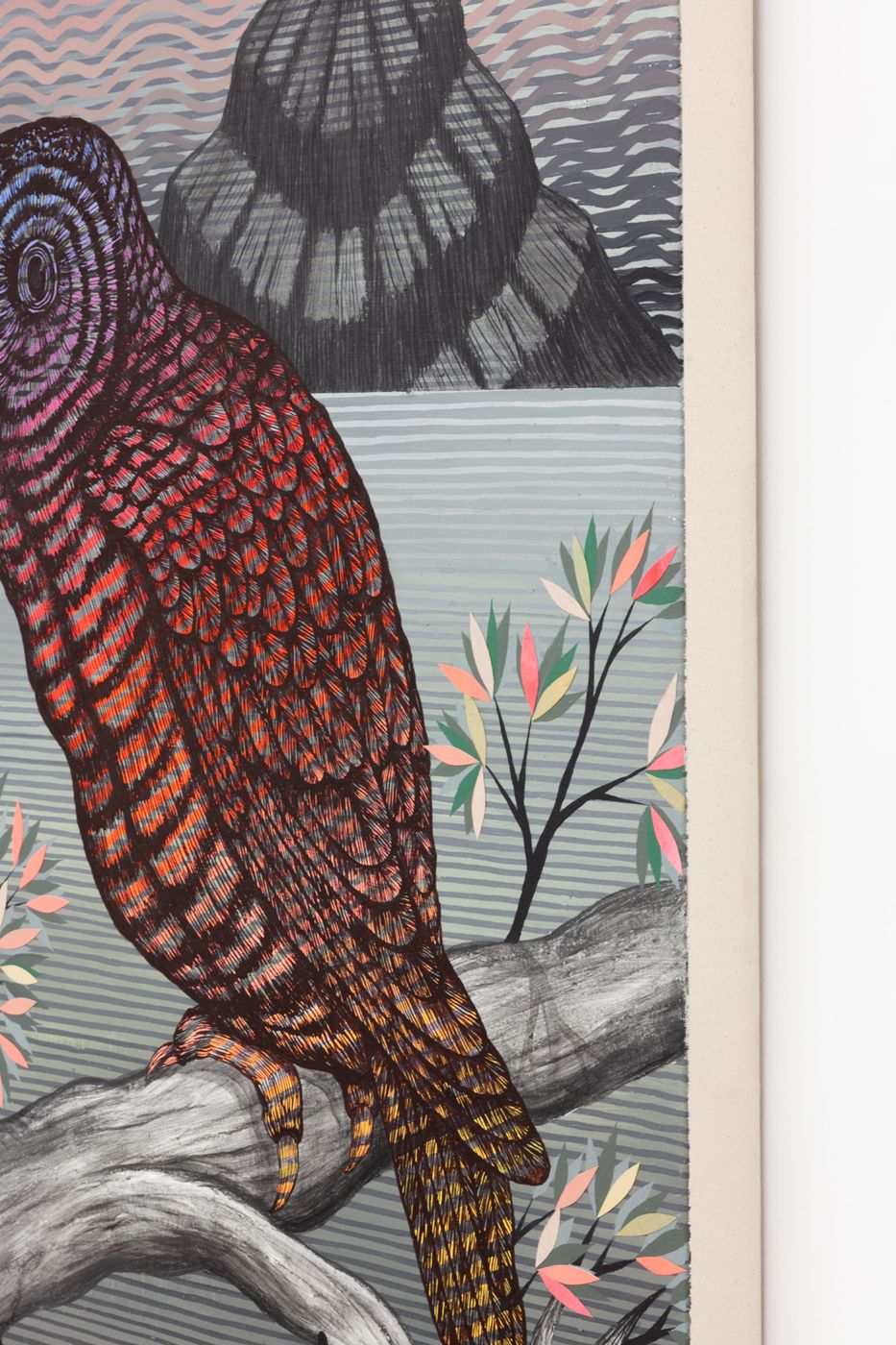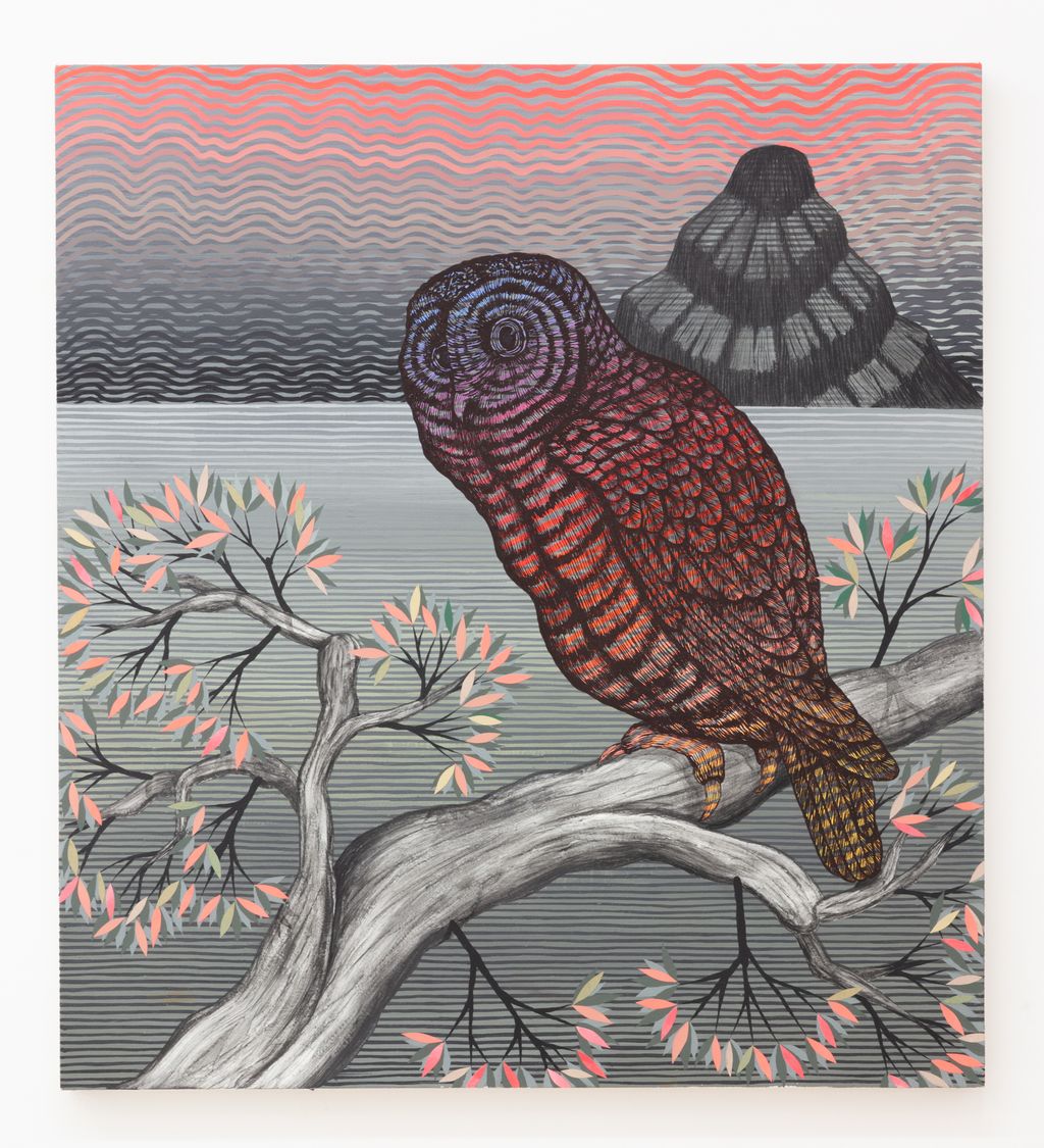 Andrew Schoultz, Owl (Grey Landscape), 2025