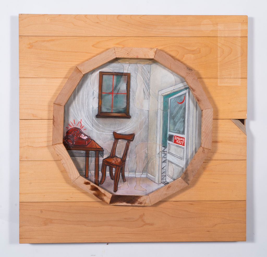 Color pencil, hot call, pastel, escape, collage on paper on pastelmat on hardwood flooring