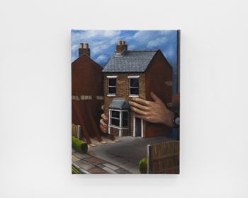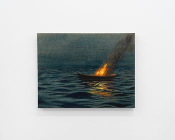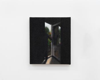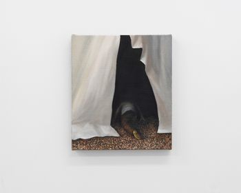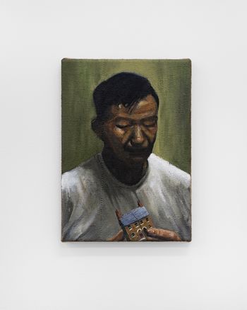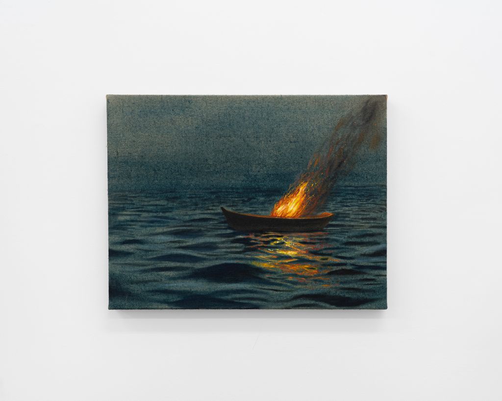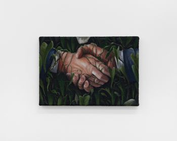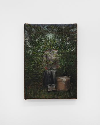 Morgan Wills, “Lost,” 2025, Oil and acrylic on jute, 20 x 26 x 1 cm