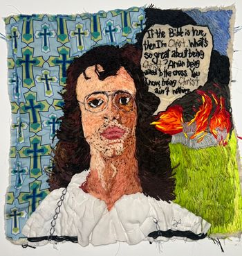 Bill Arning Exhibitions presents a two-artist booth featuring Jean-Paul Mallozzi and Alexandria Deters, under the title Secrets—Censored/Hidden/Revealed.