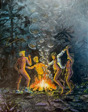 The artists in Ambiguous Storytellers—from New York, the Hudson Valley, the Berkshires, Miami, Los Angeles, Houston, and Dallas—work in this tradition. They weave elliptical anecdotes, myths, confessions, and dreams into their picture-making. A simple strategy often used by museum educators to engage children—asking, What do you think is happening here?—works just as well for adults. I encourage viewers to try it. Approached with openness and curiosity, these works are difficult to resist and richly rewarding to spend time with for open-hearted art mavens,