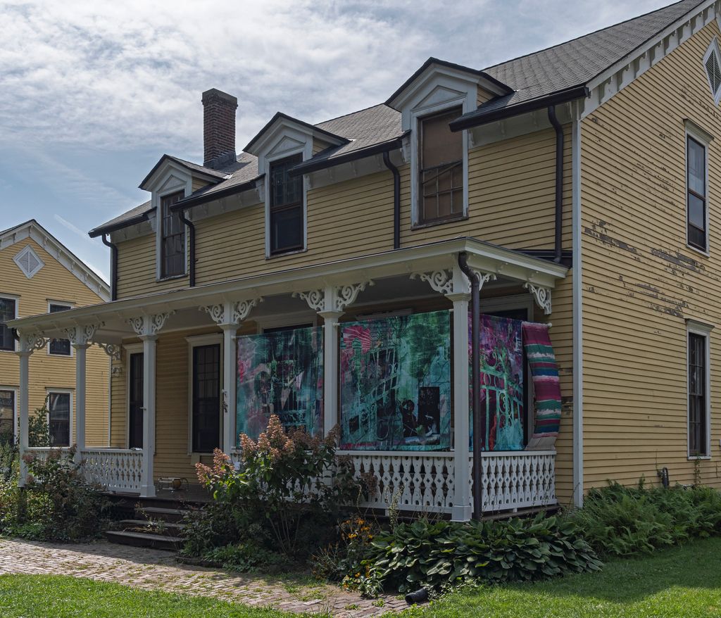 “Tides” builds upon Tulloch’s ongoing practice that explores vernacular architecture to investigate cultural hybridity in tactile and sensory ways. The simple architectural language of the porch allows for a continual transformation. As the entryway to the home and a middle ground between the private interior and the public realm, the porch functions as a threshold between domestic experience and forms of cultural exchange that build community.