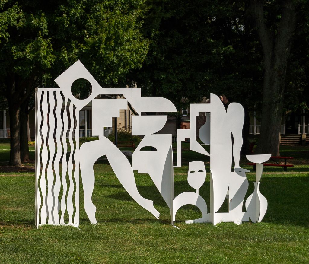 In this exhibition, Salas works entirely in laser-cut, powder-coated aluminum at a thickness optimized for permanent outdoor display. Her sculptures are carefully balanced compositions inspired by the visual lexicon of healing therapies and dream analysis. There is a deliberate vulnerability and resilience in these assemblages of signs: Salas shows us that her stacked and curving geometries, like the caryatids of antiquity, can have great physical and symbolic staying power.