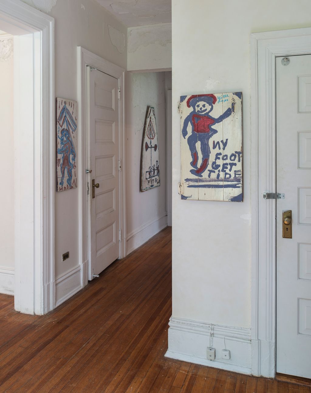 “People throws this stuff out. I get in my van and go collect it, and I bring it back to the Hobby Shop”. Willie Jinks was a self-taught Black artist from Atlanta, GA, whose hobby shop was a small backyard shed that eventually expanded to encompass his entire home and yard. During a prolific life, Willie Jinks (1921-2012) created kinetic whirligigs, complex assemblages and paintings depicting memories of growing up in rural Georgia, animals, fantastical creatures and recreations of funny stories he’d heard from friends using only found materials and enamel paint from a local hardware store.