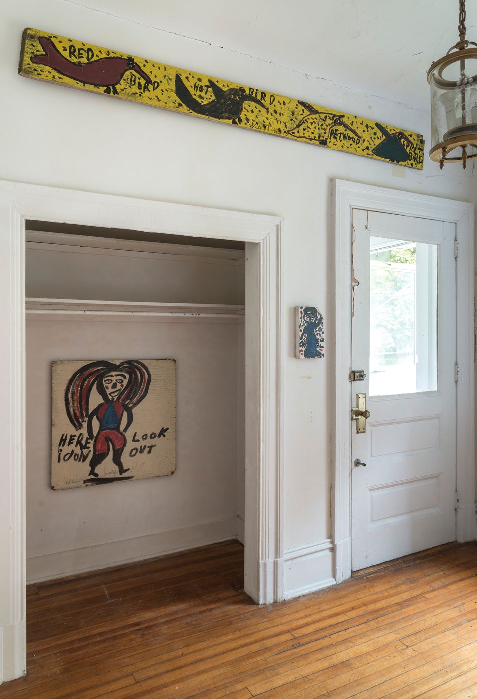 “People throws this stuff out. I get in my van and go collect it, and I bring it back to the Hobby Shop”. Willie Jinks was a self-taught Black artist from Atlanta, GA, whose hobby shop was a small backyard shed that eventually expanded to encompass his entire home and yard. During a prolific life, Willie Jinks (1921-2012) created kinetic whirligigs, complex assemblages and paintings depicting memories of growing up in rural Georgia, animals, fantastical creatures and recreations of funny stories he’d heard from friends using only found materials and enamel paint from a local hardware store.