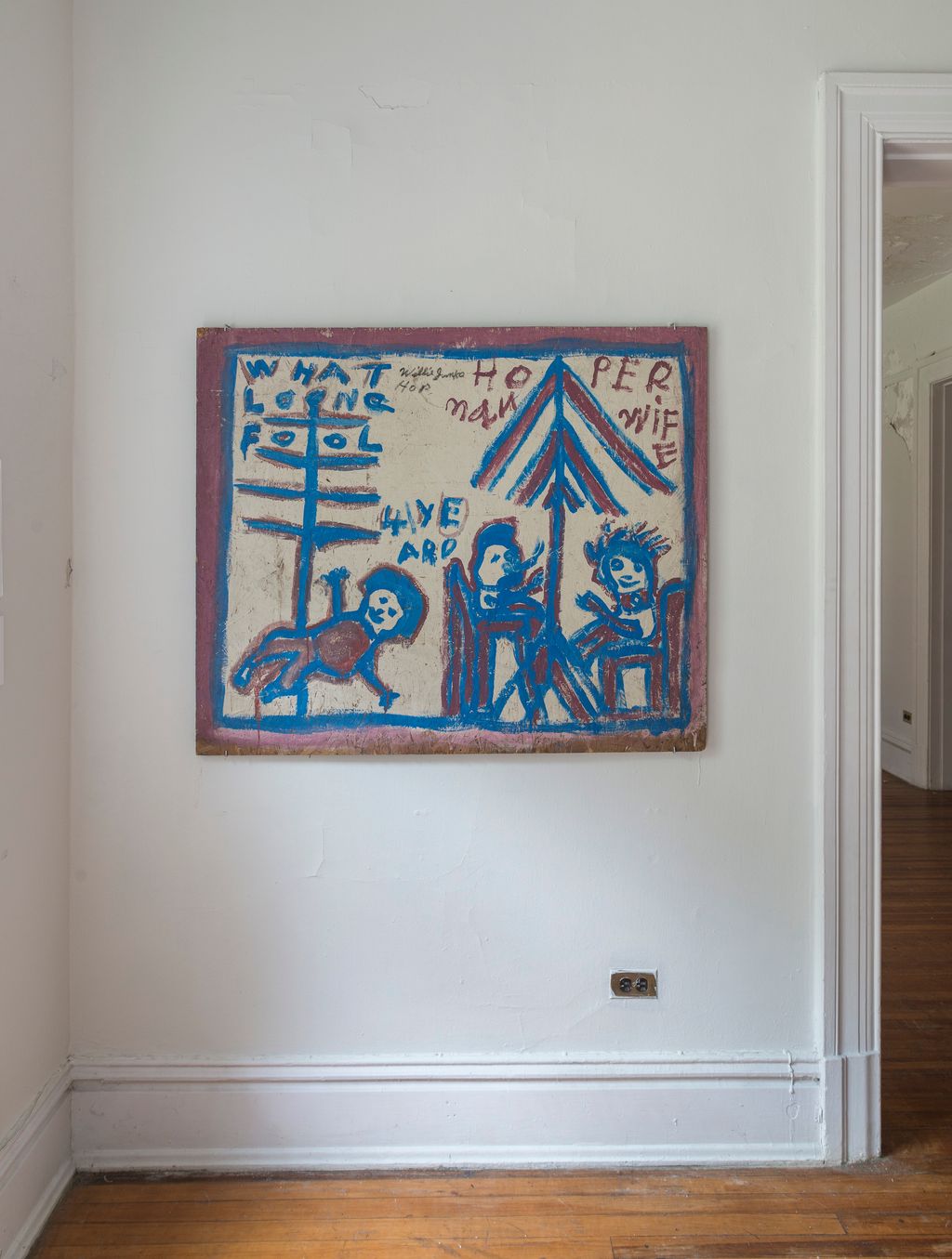 “People throws this stuff out. I get in my van and go collect it, and I bring it back to the Hobby Shop”. Willie Jinks was a self-taught Black artist from Atlanta, GA, whose hobby shop was a small backyard shed that eventually expanded to encompass his entire home and yard. During a prolific life, Willie Jinks (1921-2012) created kinetic whirligigs, complex assemblages and paintings depicting memories of growing up in rural Georgia, animals, fantastical creatures and recreations of funny stories he’d heard from friends using only found materials and enamel paint from a local hardware store.