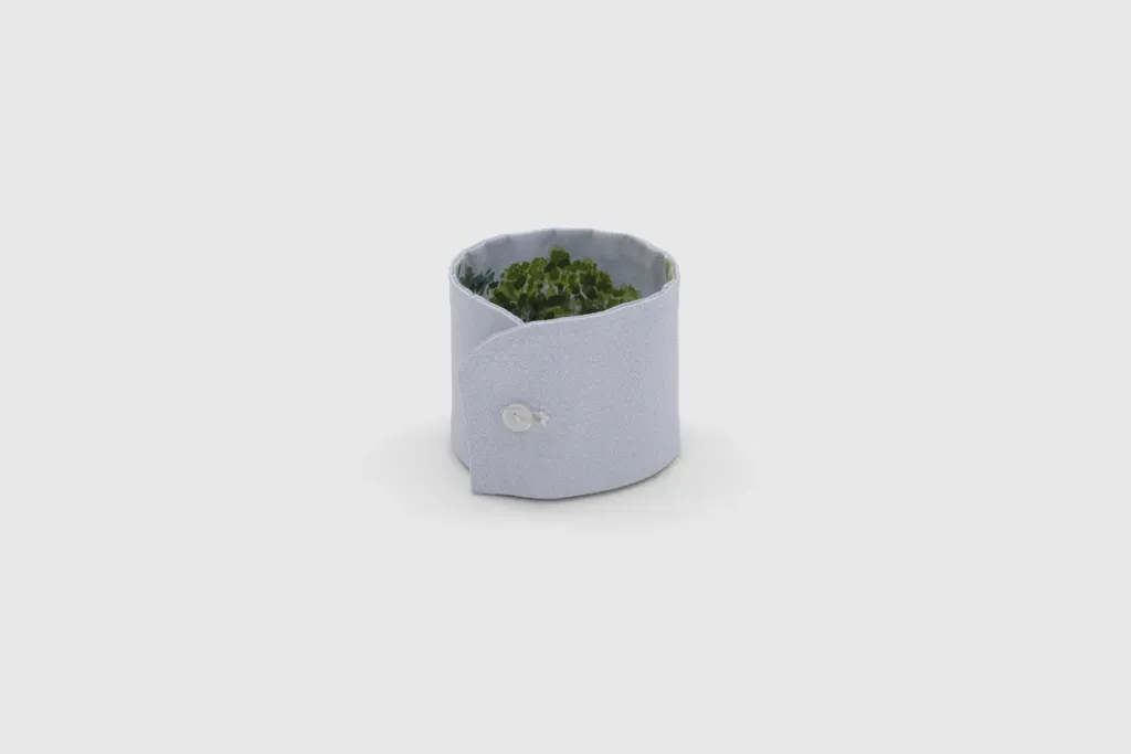 Chang Sujung, “Mobile Observer 1,” 2024, watercolor, cotton, button, 2.75 x 3 x 2.5 inches.